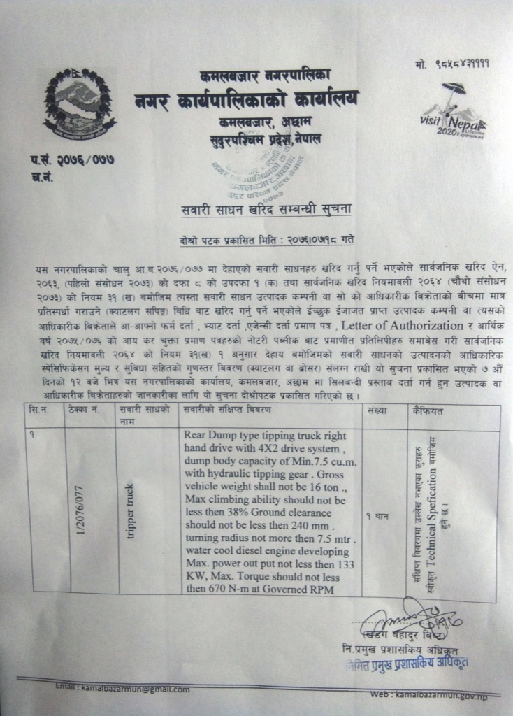 सवारी साधन खरीद सम्बन्धी सुचना (दाेस्राे पटक) प्रकासित मिति २०७६।०७।१८